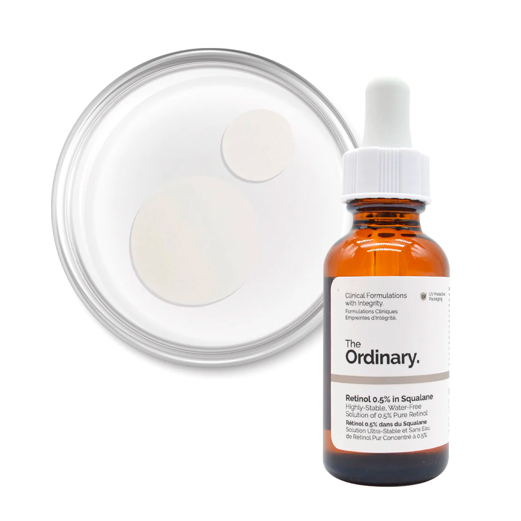 Retinol 0.5% in Squalane offers a water-free solution containing 0.5% retinol—an ingredient that improves the appearance of fine and dynamic lines that arise from a loss of collagen and elastin, while evening skin texture and tone. What’s more, this intermediate formula is supported with squalane, a moisturizing agent naturally found in your skin that enhances surface-level hydration and helps combat the dryness that can be associated with retinol use.